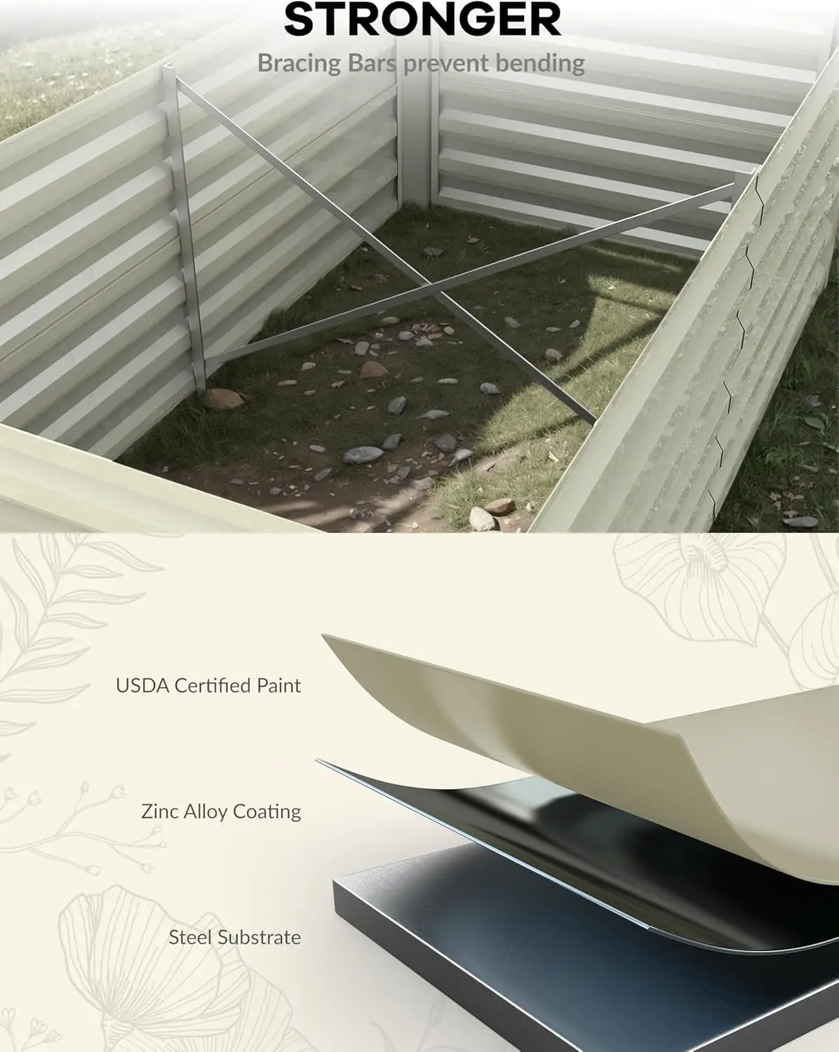 ✔️ Rustproof Galvanized Steel – Durable, weather-resistant construction for outdoor use